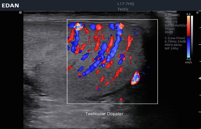 Επίσης καθίσταται δυνατή η απεικόνιση υγρικής συλλογής εντός του οσχέου (υδροκήλη, αιματοκήλη, πυοκήλη), ενώ με τη χρήση του έγχρωμου Doppler αποτελεί βασικό διαγνωστικό εργαλείο για τη διερεύνηση τυχόν κιρσοκήλης σε περιπτώσεις υπογονιμότητας.